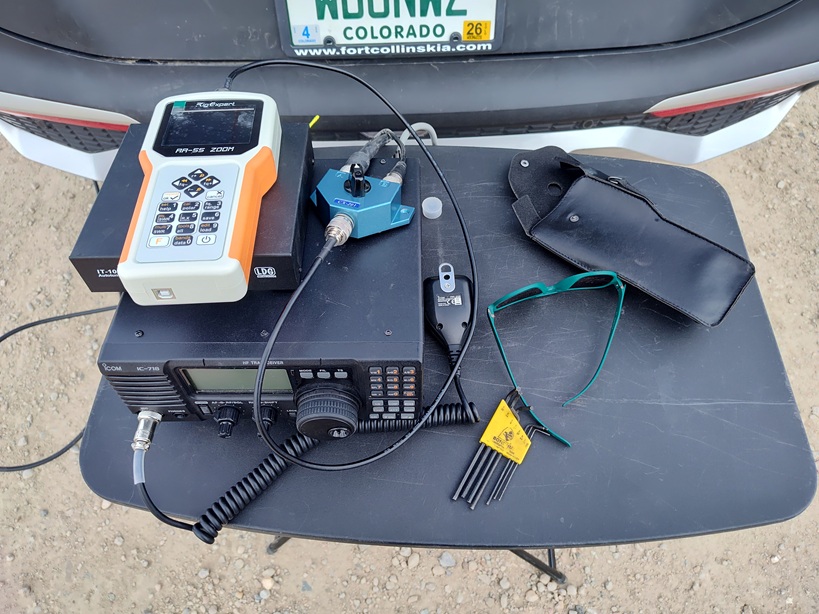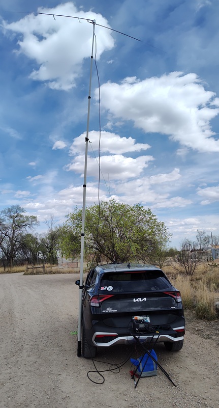 My first POTA activation was on 2025 March 17 at US-7490 Pawnee National Grassland. About 10 miles (15 minutes) from my home QTH, this is the closest POTA park. The next closest is about a 25-minute drive. After that, the drive is at least 40-60 minutes. Things are spread out around here. After every activation or hunting session, I update a page featuring maps of POTA QSOs. While I haven't traveled far and wide, my signals have. As of 2026 March 30, I've activated 52 unique parks in Colorado and Utah, hunted 1,320 parks, had 1,312 park-to-park QSOs, and had LOTS of fun. Like everyone else, I've tried several different setups looking for the perfect combination of performance and convenience. It is a journey without a finish line. I started with an 80-10m EF between two Spider Beam poles and eventually settled on Shark Ham Sticks, but with more than one iteration. At first, I used a magmount on top of the car with Shark Quick Mounts on each stick (7 to cover 10-75m). This made swapping bands very quick and easy, especially good if trying to work several parks in a day. The performance was outstanding, being able to reach around the world with only 100 watts on an IC-718 (I LOVE this radio for POTA). I wondered what would happen if I got a second set of stick and used them as dipoles on a tall mast. So, I spent a good chunk of change with GigaParts to get the necessary supplies, including a third 20m stick to compare the dipole and vertical by using an antenna switch to go from one to the other and so make almost simultaneous comparisons. Below are the details of the dipole setup and the test results. |